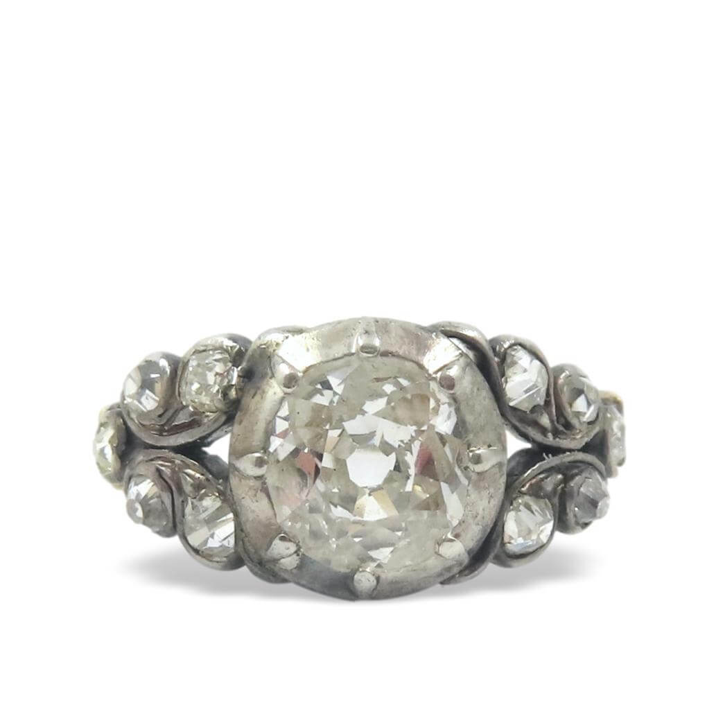 A stunning Asscher cut diamond three stone ring. mounted to the centre with a certificated Asscher cut diamond, weighing 1.08 carats, with a 0.45 carat carré cut diamond to either side. Each shoulder is further mounted to with a graduation of round brilliant cut diamonds. Expertly hand crafted throughout in platinum, with millegrain detailing in the Art Deco style.