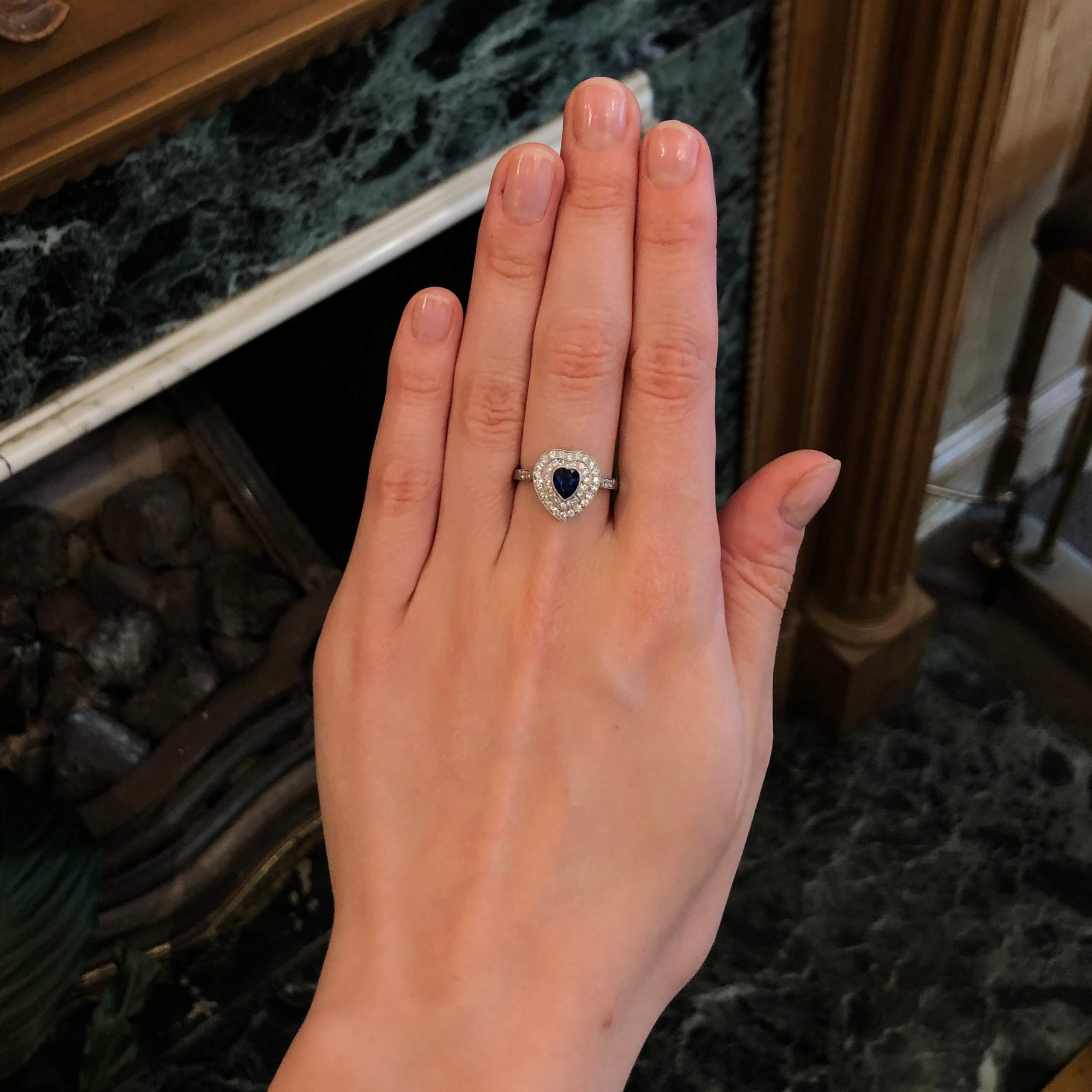 A beautiful contemporary Belle Époque style heart shaped Burmese sapphire and diamond double target cluster ring. The certificated velvet blue heart shaped Burmese sapphire, weighs 0.75 carats and is wonderfully set within a tiered double target cluster frame of transitional brilliant cut diamonds. Hand crafted throughout in platinum in the Edwardian style.