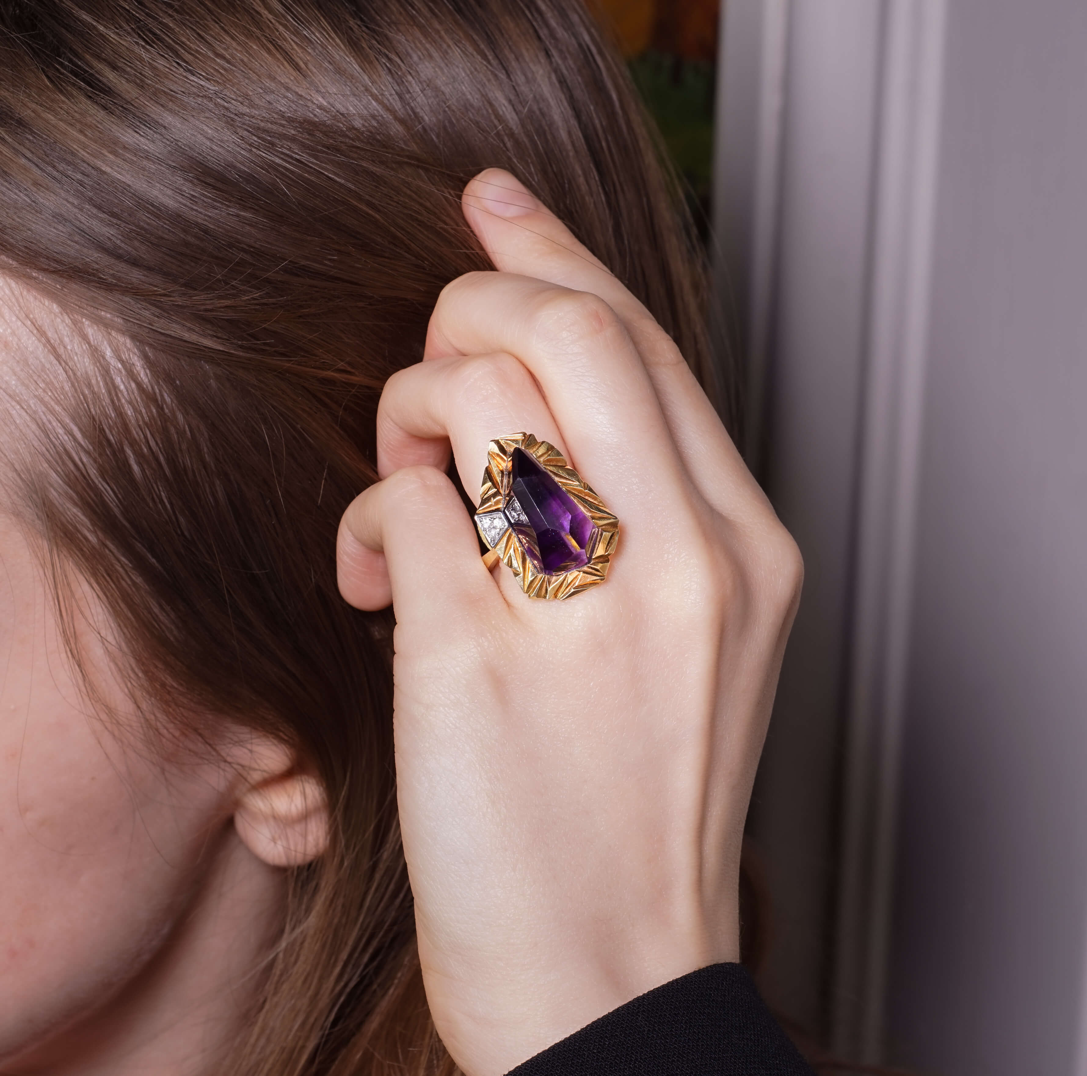 GRIMA. Vintage Amethyst Crystal Cocktail Ring